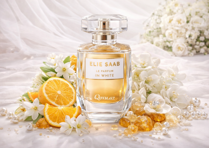Elie Saab – Le Parfum Qadın, portağal çiçəyi parıltısı, zərif yasəmən ürəyi və bal-paçuli-sidr bazası ilə qurulan, klassik cazibəni couture zərifliyi ilə birləşdirən floral-oriental imza…