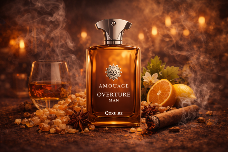 Amouage – Overture Man müasir niş parfümeriyada teatrik və böyük səhnə effekti verən kişi ətirlərindən biridir. Bu kompozisiya “sakit təmizlik” yox, dram, güc, sirr və dərinlik hissi yaradır. Amouage onu “dünyada kişinin tənhalığından ilham alan, dramatik, cəsur və özünəinamlı” odunsu qoxu kimi təqdim edir. Burada məqsəd sadəcə yaxşı qoxumaq deyil, giriş edən kimi atmosfer qurmaqdır.