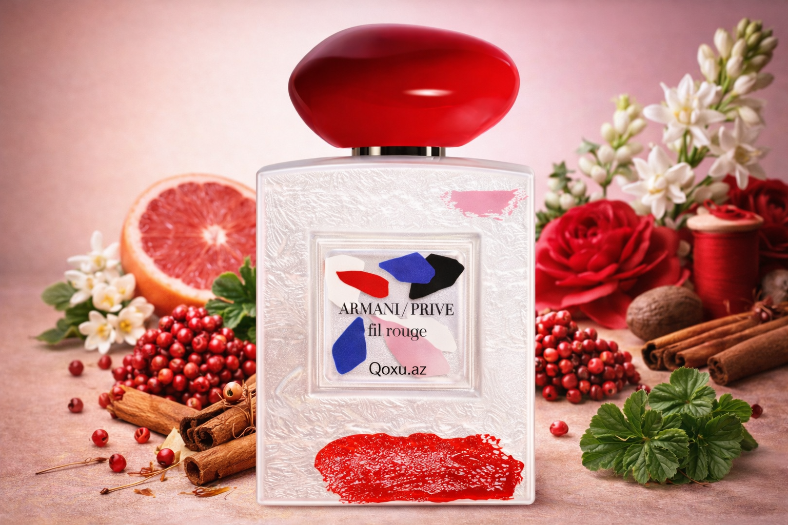 Fil Rouge — Armani Privé-nin niş parfümeriyasında romantik və eyni zamanda dramatik aura yaratmaq üçün nəzərdə tutulmuş qadın ətiridir. Məqsəd — “qatlı duyğular, şərq romantikası və lüks zövq”ü birləşdirən unikal imza. Adındakı “Fil Rouge” — fransızcada “qırmızı iplik”, “bağlayıcı, eşq və ehtiras ipi” metaforasını verir.