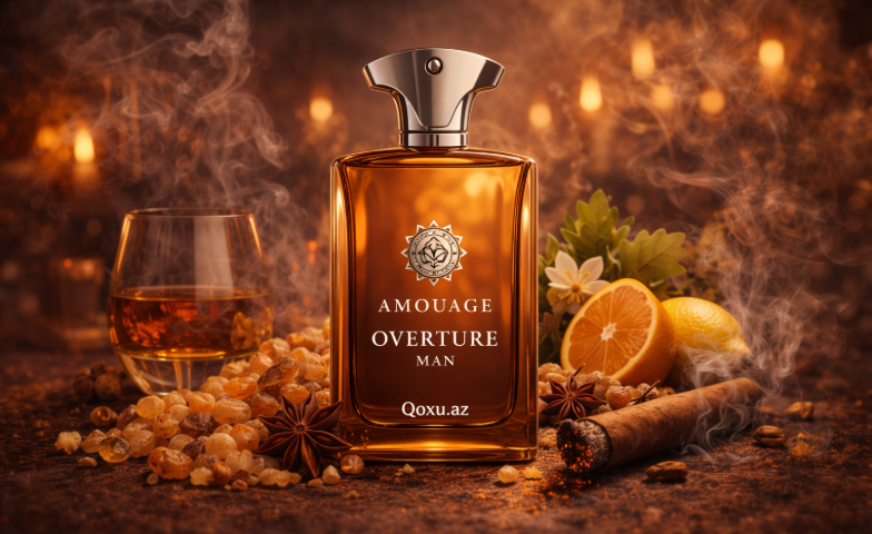 Amouage – Overture Man Kişi ətri, konyaklı-ədviyyatlı açılış, mirra və labdanumla zəngin ürək, tüstülü dəri və ladan bazası üzərində qurulan dramatik, dərin və statuslu niş…