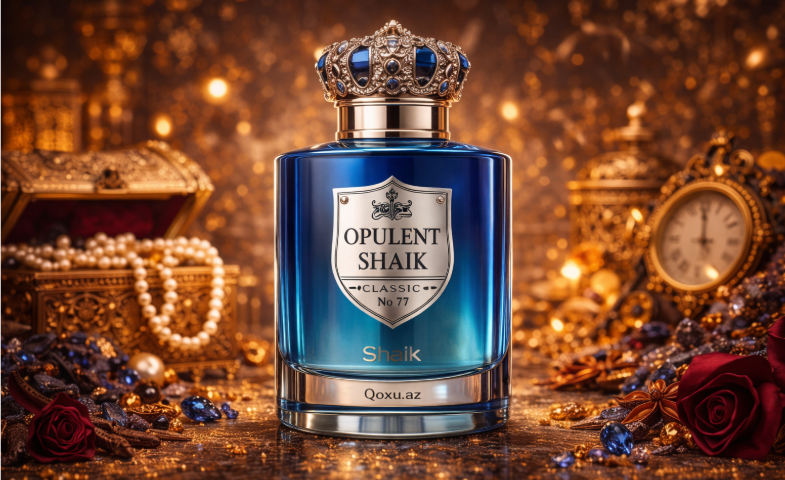 Shaik – Opulent Shaik Classic No 77 Saray dəbdəbəsi, qızılı çiçək buketi və qatranlı-ənbər dərinliyi — Opulent Shaik 77 “qoxu”dan çox, zənginlik və nüfuz havası…