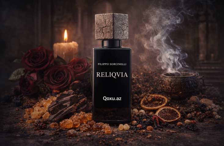 Filippo Sorcinelli – Reliqvia Uniseks ətir, tüstülü buxur, qaranlıq ağaclar, şam ağacı, tütün və qara qarağat kölgəsi ilə müqəddəs məkan, relikviya və qədim kilsə atmosferi…