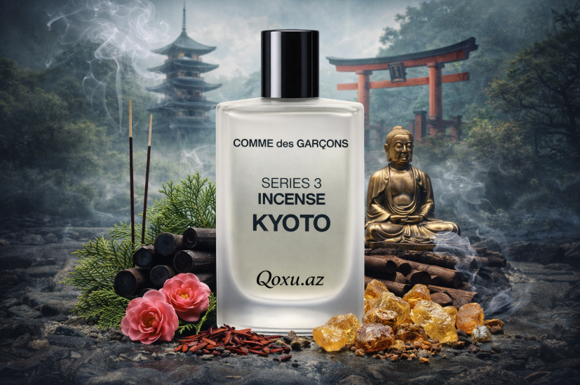 Comme des Garçons – Series 3 Incense: Kyoto 2002-ci ildə təqdim olunan, Series 3 Incense kolleksiyasının ən sakit və ən kontemplativ üzvlərindən biridir. Brend onu Kyoto məbədləri, bağları və sərv ağacları ilə assosiasiya olunan mənəvi səyahət kimi qurur; müxtəlif nüfuzlu pərakəndə və redaksiya mənbələri də bu istiqaməti meditativ, woody və incense xarakter kimi təsdiqləyir.