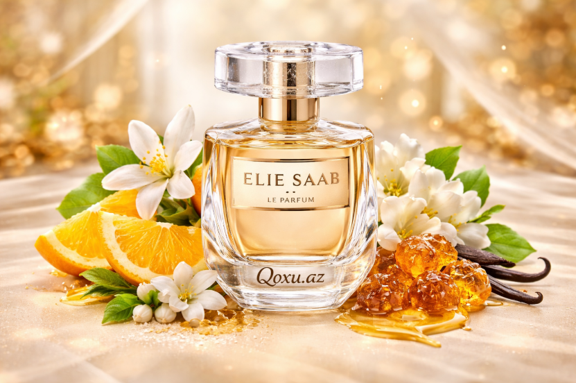 Elie Saab – Le Parfum ilk fısdan etibarən “parlaq qadınlıq” hissi yaradan ətirlərdəndir. Bu kompozisiya kəskin və aqressiv deyil; daha çox işıq saçan, zərif, eleqant və xüsusi görünmək istəyən bir obraz qurur. Burada əsas vurğu portağal çiçəyi üzərindədir və məhz həmin not ətirə həm təmizlik, həm də qızılı bir parlaqlıq verir.