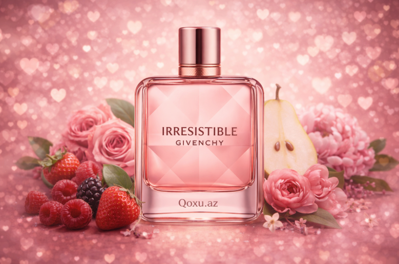 Givenchy – Irresistible müasir qadın parfümeriyasında “oynaq zəriflik” ideyasını ən yaxşı verən ətirlərdən biridir. Bu kompozisiyanın əsas cazibəsi ondadır ki, o həm parlaq və gənc, həm də səliqəli və bahalı hiss olunur. Ətir ümumi olaraq meyvəli-çiçəkli-ağaclı istiqamətdə qurulub, amma şirinlik və romantikanı çox təmiz və şəhərli formada təqdim edir.