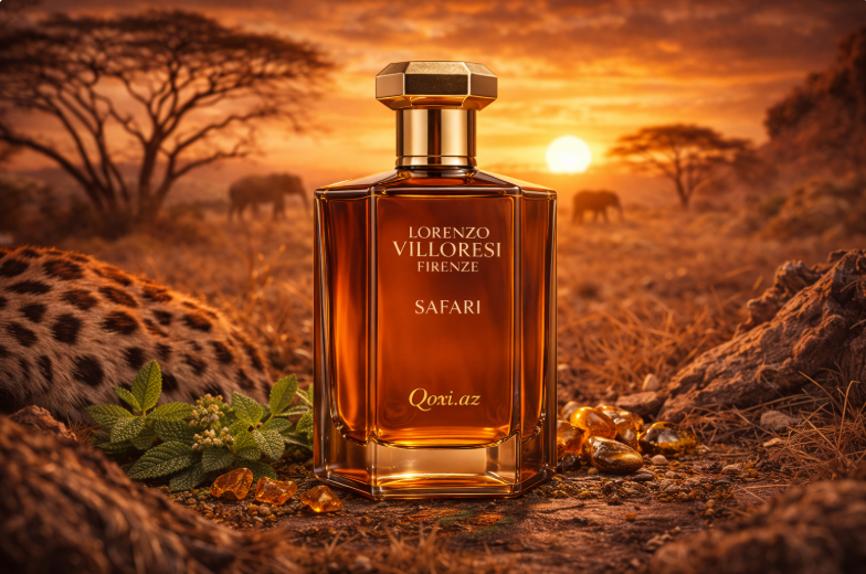 Safari Lorenzo Villoresi-nin “səyahət və mədəniyyət” estetikasını ən yaxşı göstərən ətirlərindən biridir. Bu kompozisiya klassik “fresh” deyil, eyni zamanda ağır şərq də deyil — daha çox quru, günəşli, odunlu və aromatik hiss üzərində qurulub.