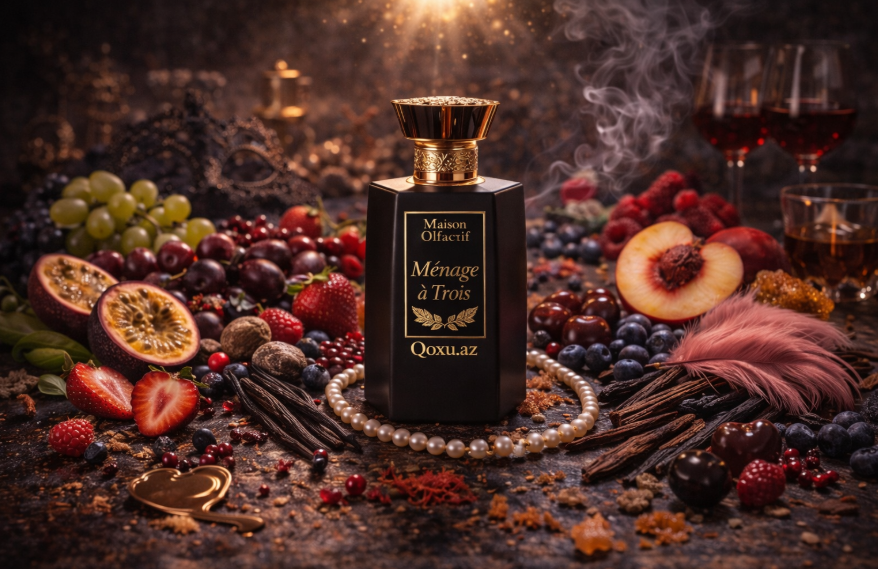 Ménage à Trois adı ilə provokativdir, amma qoxu strukturu balanslı və düşünülmüşdür. Burada üç əsas istiqamət birləşir: meyvə parıltısı, ağ çiçək kremi və isti-şərq bazası.