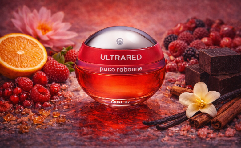 Paco Rabanne – Ultrared Kişi üçün, qan-narıncı sitrus partlayışı ilə açılan, ürəkdə şirin–isti akkordlar və bazada vanil–ambra fonu ilə gecə üçün enerjili, cazibədar və diqqət…