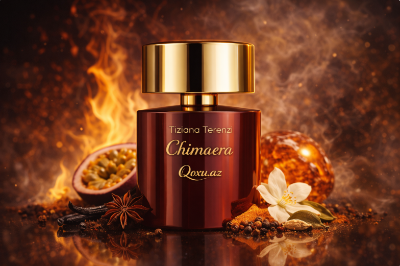 Chimaera — Tiziana Terenzi-nin mistik, kompleks və çoxqatlı uniseks parçalarından biridir. Burada açılışda sitrusların təmiz və enerjili tonu təqdim olunur; sonra qızılgül, kardamon, iris və yasəmən çiçəkli-dərin hissəni qurur. Finalda qvayak ağacı və paçuli dominantlaşaraq kompozisiyaya tünd, toxumlu dərinlik verir; baza isə ənbər və müşk ilə uzun, sərin və cazibədar iz buraxır.