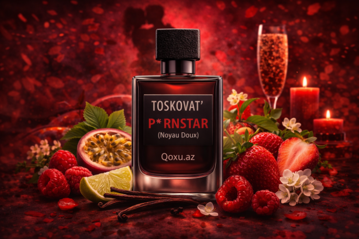 Toskovat’ – Pornstar (Noyau Doux) markanın ən provokativ, amma eyni zamanda ən “geyinə bilən” işlərindən biri kimi görünür. Bu ətir klassik romantik meyvə-çiçək xəttində qalmır; o, daha çox buzlu tropik kokteyl, parlaq gecə həyatı və bir az da ironik cazibə hissi yaradır. İlk təəssürat çox canlı və çox rənglidir.
