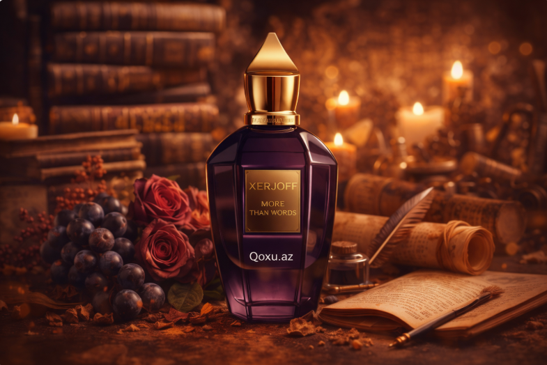 Xerjoff – More Than Words Join The Club kolleksiyasının ən məşhur və ən xarakterli ətirlərindən biridir. Bu kompozisiya yazı dünyasından, sözün gücündən və köhnə kitabxana atmosferindən ilham alır. Ətrin ümumi hissi sadəcə “oud-rose” deyil — daha çox meyvəli mürəbbəvari tündlük, dərin qızılgül, tüstülü kitab rəfi və isti qatran təəssüratı yaradır.